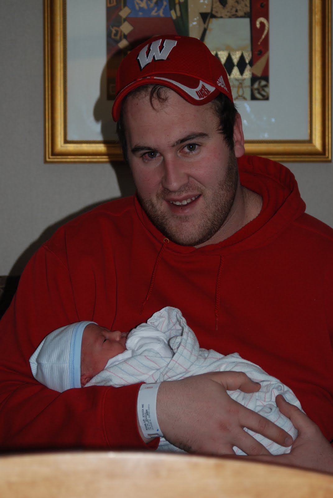 We arrived at the Hospital at 6:30am ready for a long day. The day really got started around 7:15pm. Jess went from 6cm dilated at 7:15ish to OH GOODNESS I am ready and need to push by 8:20ish. Then she had to wait for her doctor to get to the hospital...this lasted for 30 min. (That had to be the longest 30 min of her life) Then at 8:55pm on the 24th of March, Mason Curtis McGurn was born.